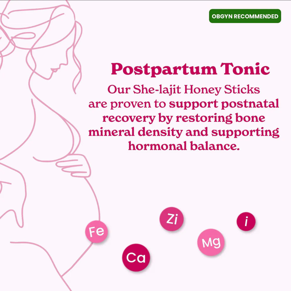 Delivered in convenient, strawberry-flavored honey sticks, SHE-Lajit provides targeted support for women dealing with fatigue, hormonal imbalances, PMS symptoms, postpartum recovery, or everyday stress - making it more than just a generic energy supplement.